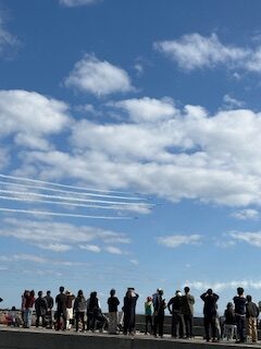 天候☀も良く前回よりも観覧する人が多かったですが、利用者様はご自分の携帯を構え丸やハートの形やブルーインパルスの迫力ある飛行をカメラで懸命に撮っておられました。頭上を飛んだ時には大きな歓声が沸きました。