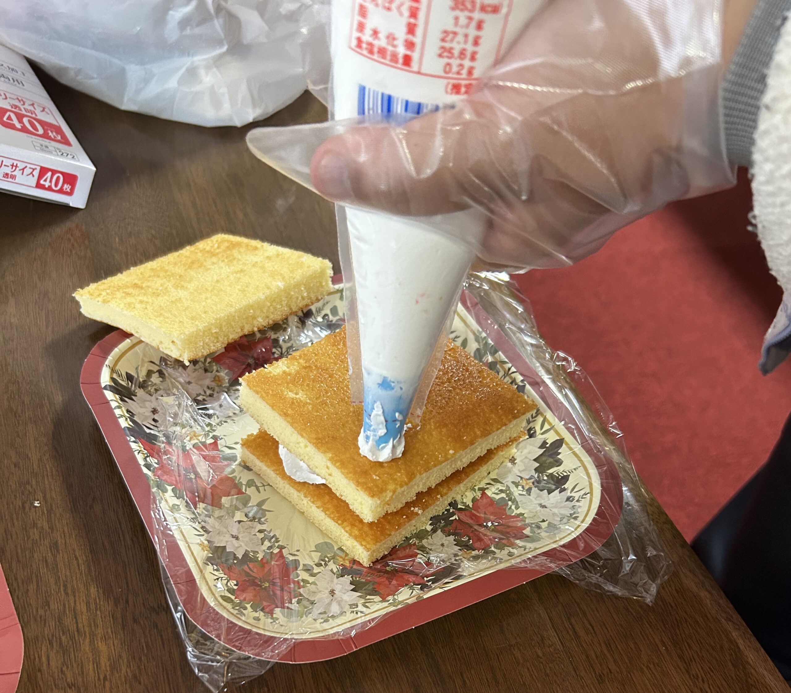 今回のレクでは、スポンジケーキと数種類のトッピングを用意し、利用者さんに好きなようにデコレーションをしてもらいました🎵