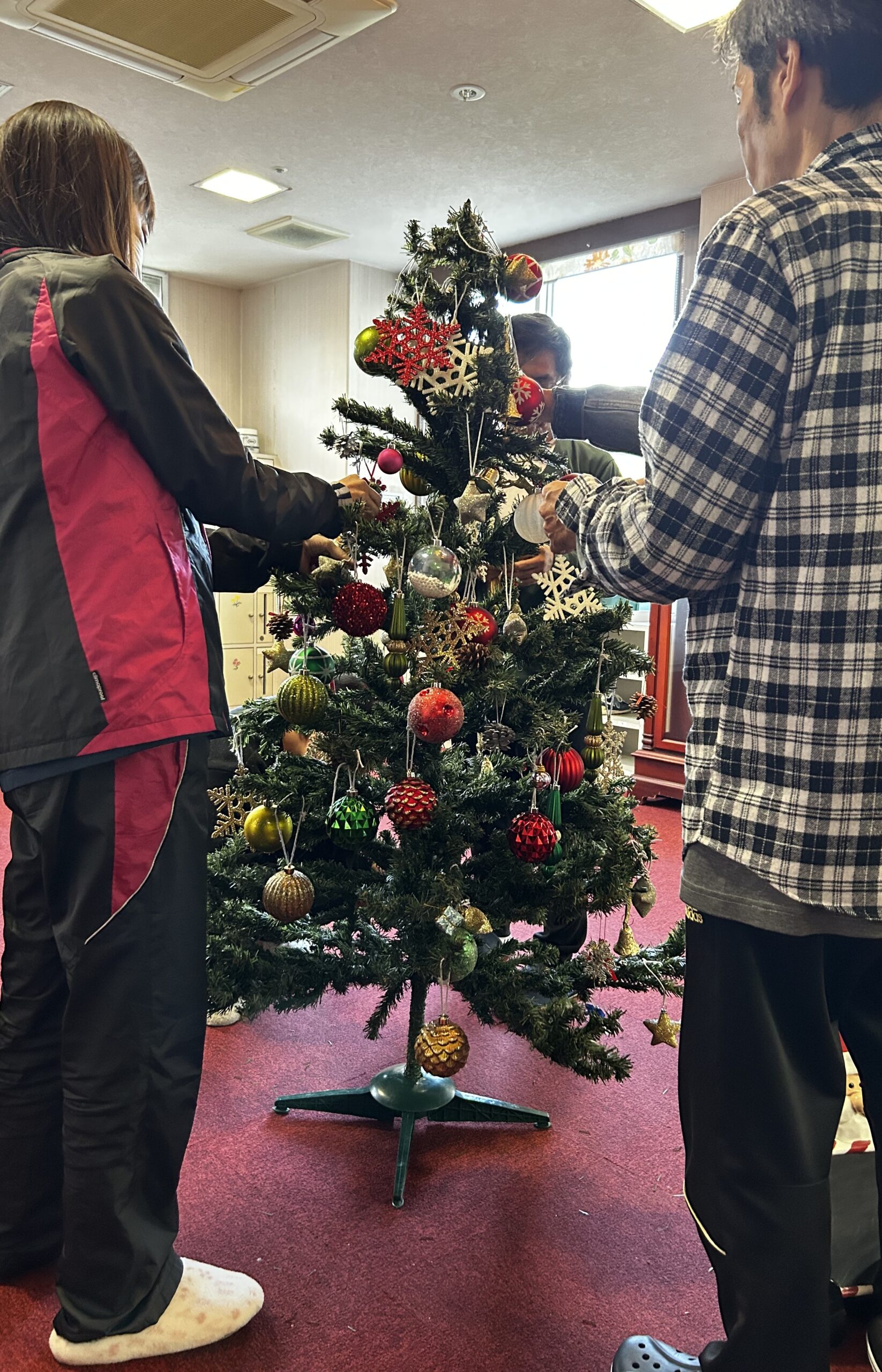 実は、このクリスマスツリーは、利用者さんが協力して飾りつけをしてくれたんです!!