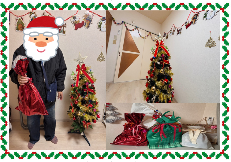 さっそく入居者の皆さんと食堂に飾りつけをしました🎅
