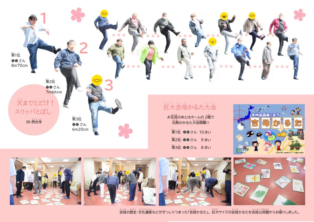 お花見を楽しんだ後はホームに戻って「巨大吉母かるた大会」を開幕!