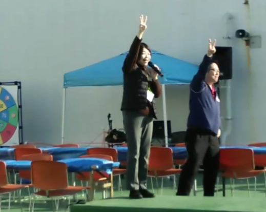《 2日目スタートのカウントダウンを行う恒屋エリアマネージャー。 冒頭の挨拶では、準備や後片付けを担うボランティアへの感謝の気持ちを伝えました。》