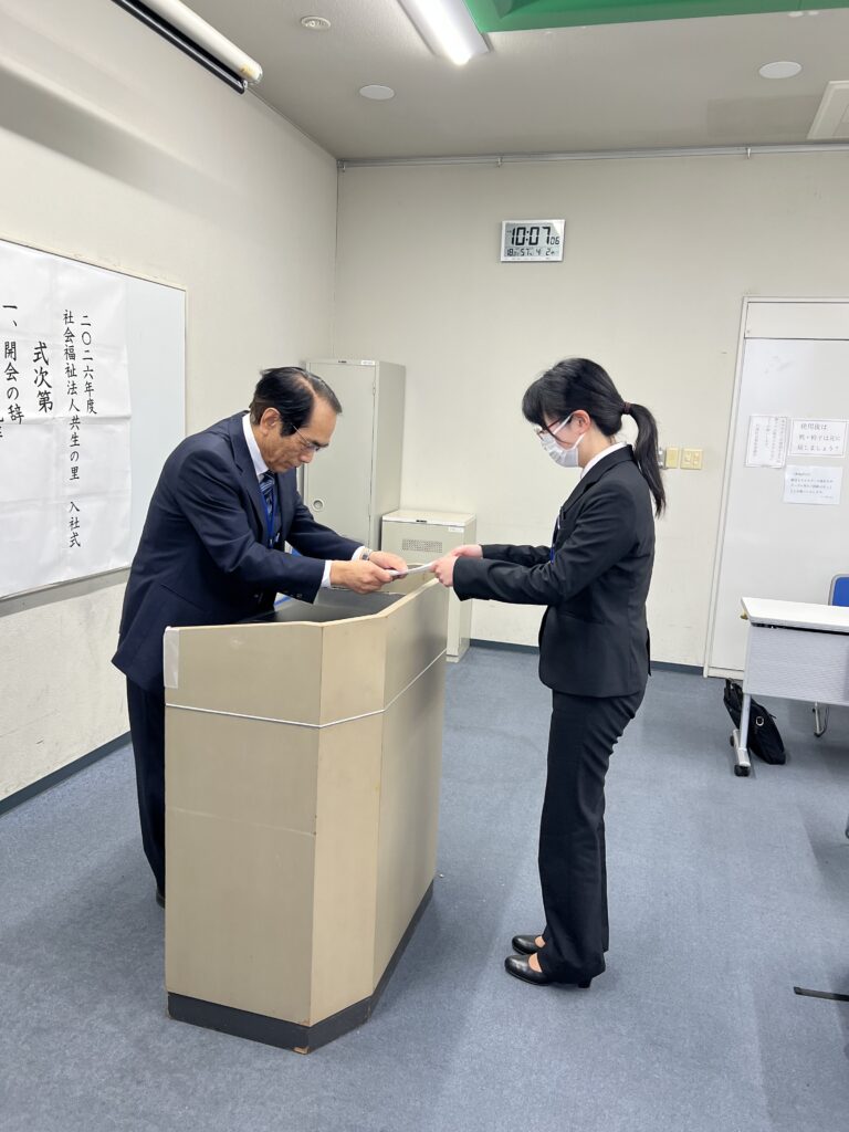 令和8年4月2日、行橋市にある「ウィズゆくはし」にて社会福祉法人共生の里の入社式を行いました。