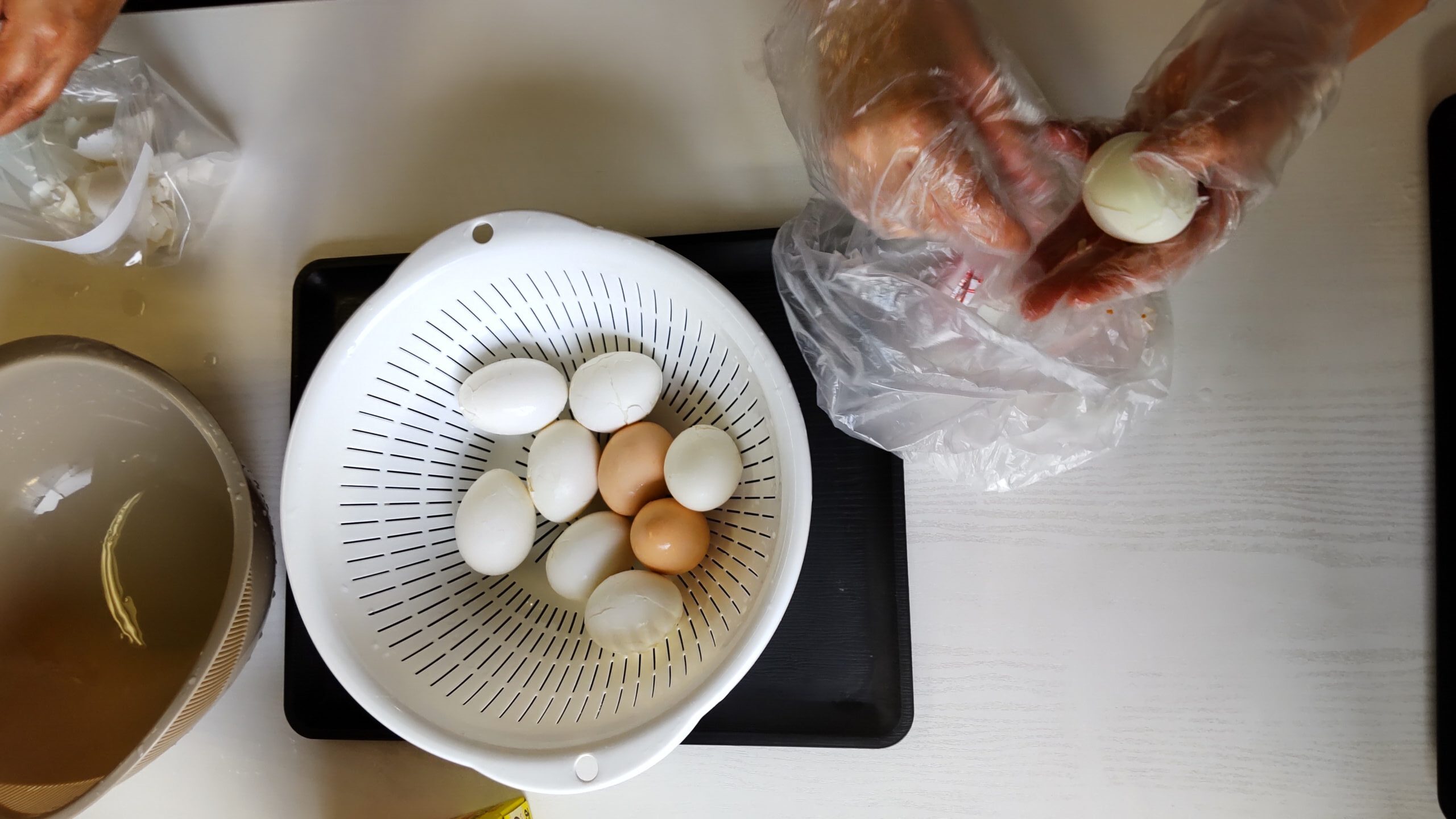 参加したメンバーさんはゆで卵の殻剥きをしたり、具を切ったり…