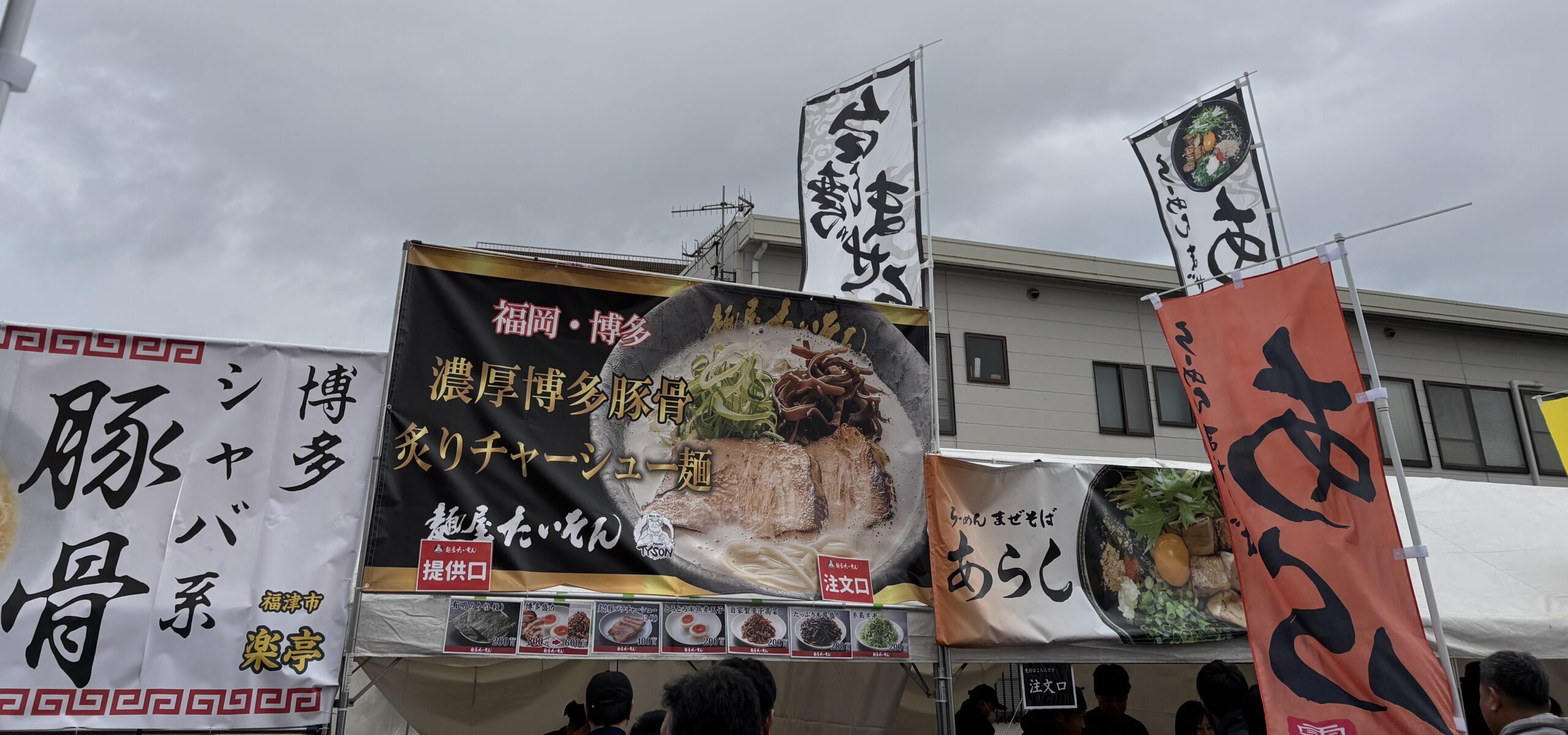 行橋の有名なラーメン屋さんに加えて博多・宮崎・鹿児島など普段食べることがないようなお店もあり、事前に並ぶお店を決めている利用者さんや「どれに並ぶ?」と会場について考える利用者さんも♪